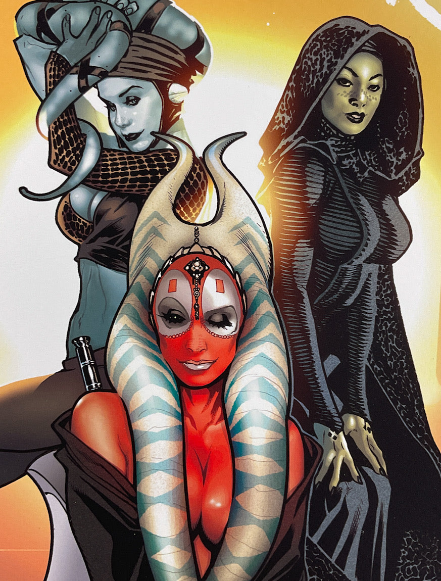 A giclee print on heavy museum quality paper with deckled edges. Exquisitely printed with deep, rich color inks. This limited edition of 100 debuted at San Diego Comic-Con 2025.