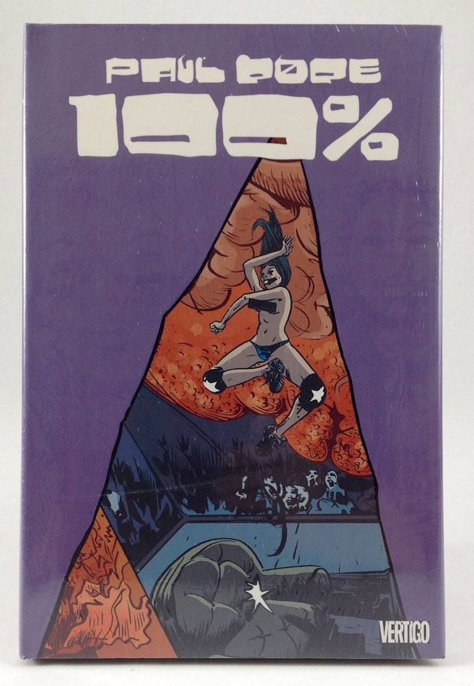All five issues of the edgy, groundbreaking miniseries from writer/artist Paul Pope are collected in one stunning hardcover package. This "graphic movie" tells three separate but interconnected stories in Pope's trademark dynamic style, shifting viewpoints and characters across the urban maze of 2038 Manhattan. Filled with wit, charm, sex and menace, 100% brings a surprisingly true-feeling future to gritty life. The collection also includes a host of character sketches, designs, and other material from creator Pope.