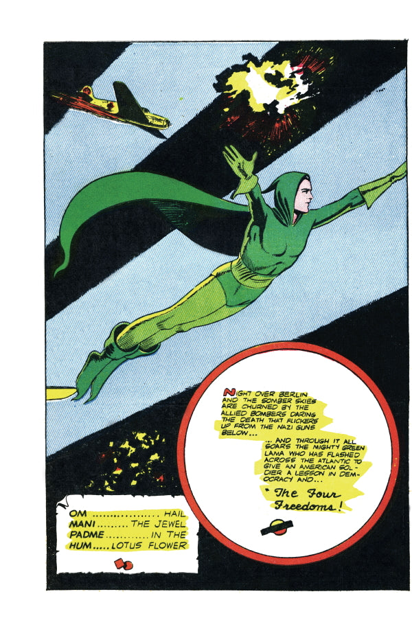 The emerald-clad freedom fighter returns to mete out further justice courtesy of famed artist Mac Raboy and writer/editor Joseph Greene! In fact, the pair even makes an appearance in this volume, join us as millionaire playboy Jethro Dumont once again chants "Om Mani Padme Hum!"
