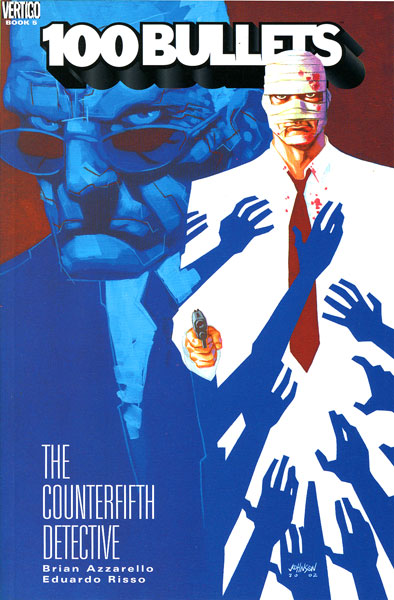 Reprinting issues #31-36 of the Harvey and Eisner Award-winning VERTIGO series, 100 BULLETS: THE COUNTERFIFTH DETECTIVE brings to light another chapter in the story of Agent Graves and the remnants of his old outfit the Minutemen. In this fifth suggested for mature readers trade paperback collection by acclaimed writer Brian Azzarello (HELLBLAZER, BATMAN/DEATHBLOW: AFTER THE FIRE), featuring art by Eduardo Risso (BATMAN: GOTHAM KNIGHTS) and a new cover by Dave Johnson, Agent Graves presents his trademark attaché case containing a gun and 100 untraceable bullets to Milo Garret — a small-time private dick who's just gotten out of the hospital after losing an argument with his car's windshield. With his face covered in bandages, Milo has become an invisible man in more ways than one. As his latest case draws him into the shadowy world of the Trust, he's forced to confront the blank space that is his past and figure out what it has to do with the attaché case he's holding in the present… and do it before what he doesn't know ends up finishing the job that the windshield started.