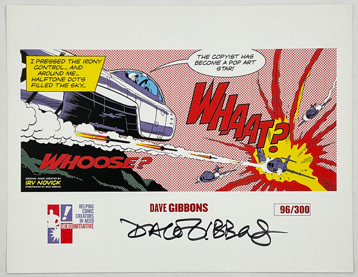 Dave Gibbons created "Whaat?" in response to Roy Lichenstein's "Whaam!" (1963) that appropriated images by Irv Novick and Russ Heath without credit.