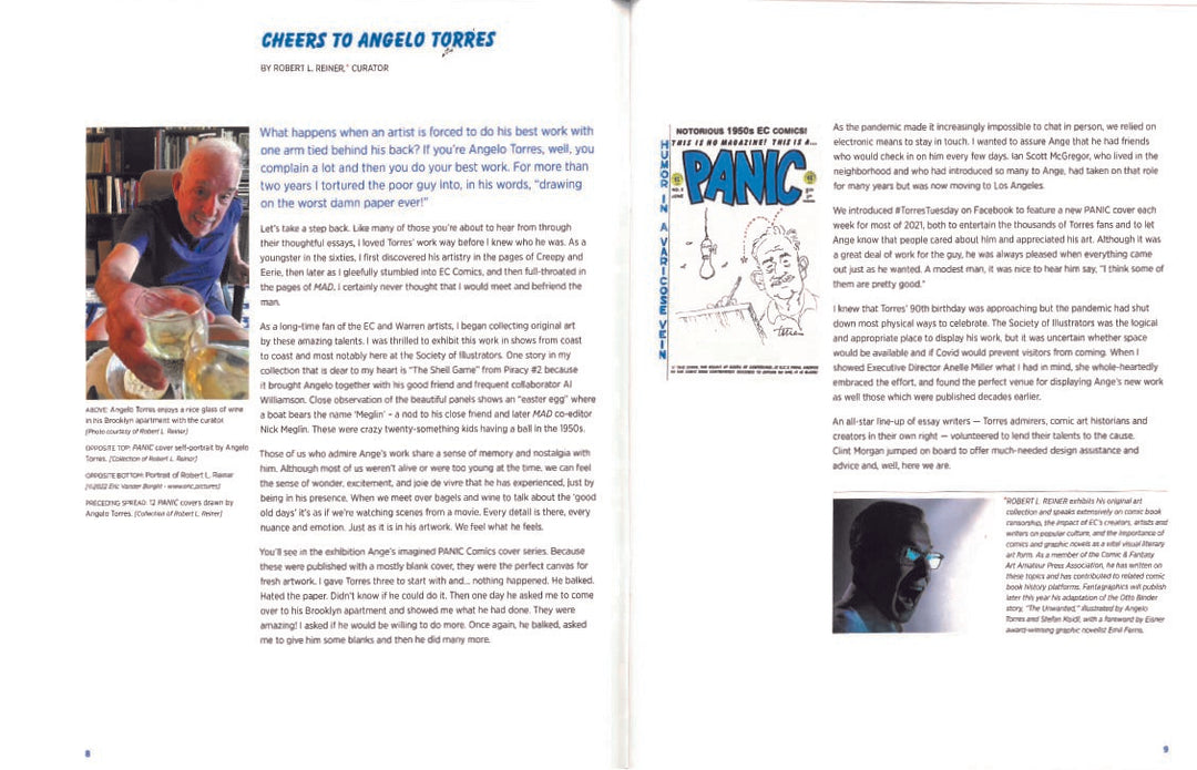 Signed by Angelo Torres on the cover. The catalog for the 2022 exhibition at the Society of Illustrators. 54 originals reproduced in color, mostly full page.