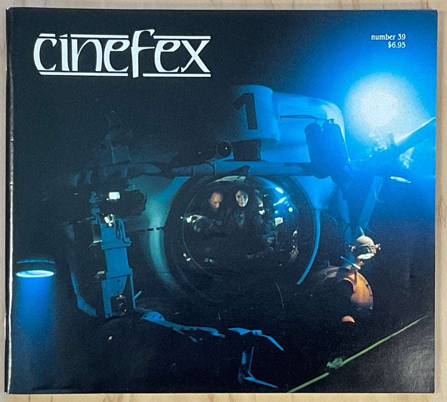 Writer-director James Cameron and producer Gale Anne Hurd have carved a distinct niche for themselves in the world of high-tech science fiction filmmaking. After traveling across time in The Terminator and to the outer reaches of deep space in Aliens, they have now journeyed into the Cayman Trough -- one of the deepest and most impenetrable chasms on earth -- for The Abyss, Set in an underwater oil drilling habitat located seventeen hundred feet beneath the ocean surface, the film begins with the search for a downed nuclear submarine and evolves into an aquatic odyssey of cosmic consequence. Forty percent of the production was shot in the largest fresh water filming tank in the world -- a specially converted reactor containment building located at an uncommissioned nuclear power plant. Nine visual effects units were engaged to produce literally hundreds of shots covering the gamut of cinematic illusions from computer generated imagery and motion control to animatronic puppets and radio control vehicles to matte paintings and underwater miniatures to rear projection and bluescreen traveling mattes. Virtually no effects technique was left untapped. A trio of distinguished effects supervisors -- John Bruno and Hoyt Yeatman and Dennis Muren -- oversaw the activities of in-house units and teams from Dream Quest Images and Industrial Light & Magic. Ancillary units were headed by Cameron veterans Robert and Dennis Skotak and Gene Warren of Fantasy II. Though photographed thousands of miles apart -- in situations both wet and dry and by artists of diverse talents and experience -- the effects blended together seamlessly with the main unit photography and with one another. The end result is an unprecedented and uncompromising accomplishment -- an epic film of wonder and imagination propelled by the singular vision and relentless drive of a master filmmaker just hitting his stride.