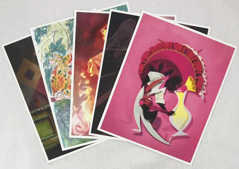 Six 8"x10" color prints by Walt Disney VisDev artists Lorelay Bove (The Princess and the Frog, Wreck-It Ralph, Winnie the Pooh), Helen Mingjue Chen (Frankenweenie, Paperman), Claire Keane (Tangled, Enchanted), Lisa Keene (The Little Mermaid, The Lion King, Winnie the Pooh), Brittney Lee (Wreck-It Ralph, Frozen) and Victoria Ying (Wreck-It Ralph, Paperman).