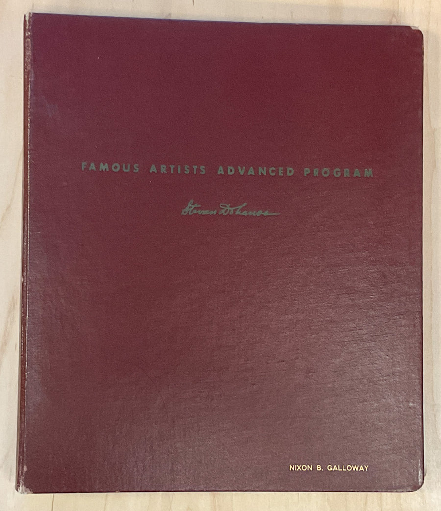 The Famous Artists School's Advanced Program which started in 1948 consisted of eleven separate volumes/binders each written and illustrated by a different faculty member (John Atherton, Austin Briggs, Stevan Dohanos, Robert Fawcett, Peter Helck, Fred Ludekens, Al Parker, Norman Rockwell, Ben Stahl, Harold Von Schmidt, Jon Whitcomb). It only lasted for a few years before school president Albert Dorne cancelled the program due to low enrollment and had all the material incinerated (according to an instructor at the school at the time) resulting in the scarcity of the remaining volumes.