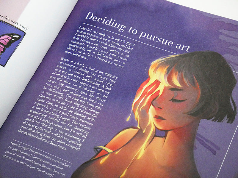 In this beautifully produced book, Feefal’s artwork and words are printed on high-quality paper, offering the reader a richly colored and aesthetically captivating experience throughout. Working with art book experts 3dtotal Publishing has allowed Feefal to not only tell the story of her artistic motivations and unique creativity, but to also share the practical techniques, tips, and tricks she has learned along the way.