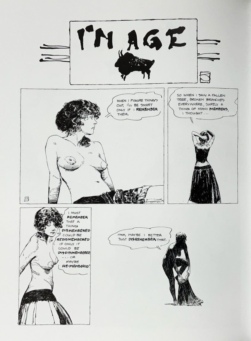 Idyl - I'm Age is a 96 page oversized 9" x 12" art book showcasing the unique vision of celebrated artist Jeffrey Jones. Collected for the first time are all the pages of these graphic strips (both written and illustrated by Jones). This volume is published in both hardcover and trade paperback versions. Both have an Introduction and an insightful Afterword by award winning artist George Pratt.