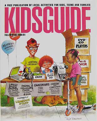 A swell ink and watercolor cover by Mort Drucker graces the cover of this local children's activities guide. Drucker's modern-day version of the neighborhood lemonade stand.