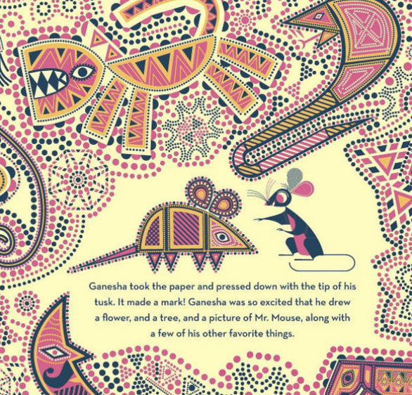The bold, bright colors of India leap right off the page in this fresh and funny picture book adaptation of how Ganesha came to write the epic poem of Hindu literature, the Mahabharata. Ganesha is just like any other kid, except that he has the head of an elephant and rides around on a magical mouse. And he loves sweets, especially the traditional dessert laddoo. But when Ganesha insists on biting into a super jumbo jawbreaker laddoo, his tusk breaks off! Ganesha is terribly upset, but with the help of the wise poet Vyasa, he learns that what seems broken can actually be quite useful after all. With vibrant, graphic illustrations, expressive characters, and offbeat humor, this is a wonderfully inventive twist on a classic tale.