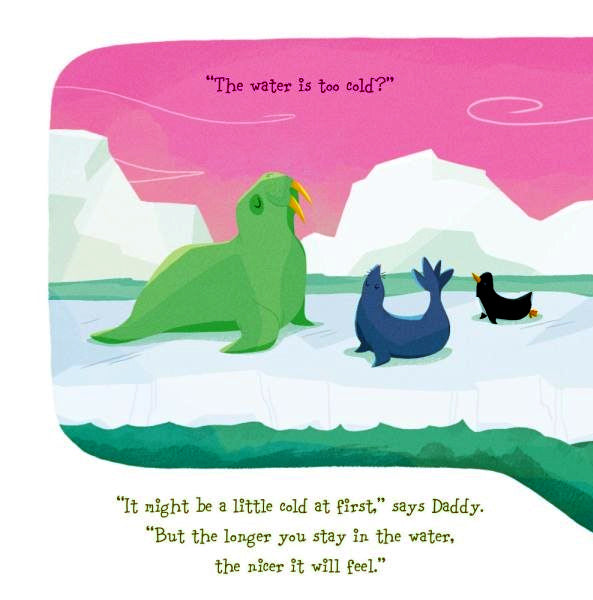Holly the hippo imagines the worst: icebergs and icy water, penguins and seals! Her imagination bursts at every turn, making it harder and harder for her to step foot in the pool.