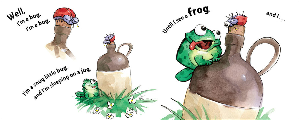 When a bug sleeping on a jug is chased by a frog, he has to jump to get away. But then that frog (who's sleeping on a log) is in for a similar surprise! He's attacked by a cat…who needs to jump away from a dog…and on it goes, until not even a shark is free from getting a little fright! Building on repetition that's fun to read and fun to listen to, Jump! is a rip-roaring, read-aloud with simple rhymes and lively illustrations that leap off the pages.