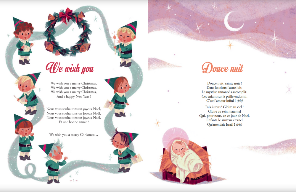 Ten Christmas songs illustrated by Annette Marnat and five stories illustrated by Marie Flusin.