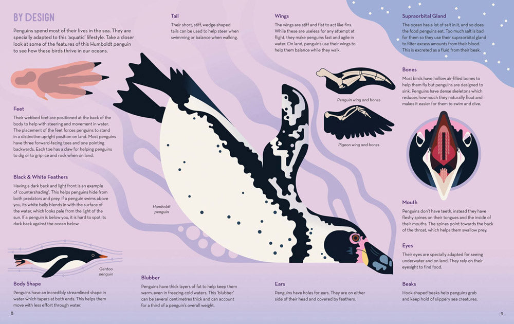 Dive into this fascinating illustrated guide to our feathered friends, the penguins. From the tiny fairy penguin that is no bigger than a ruler to the emperor penguin that is over a meter tall, find out where they live, what they eat, and how we can protect them.