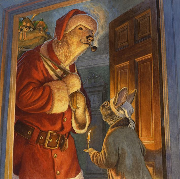 Not a creature was stirring - except for the epic-ly huge polar bear squeezing out of the fireplace with a sack of toys -- in this wonderfully illustrated re-telling of the classic Christmas story, The Night Before Christmas. Families and young readers will love the lavish watercolor illustrations of polar bear Santa, Pa Bunny in his cap, the reindeer sweeping across the sky, and of course the story regularly returns to the cozy home of the mouse, who sleeps through all the action.