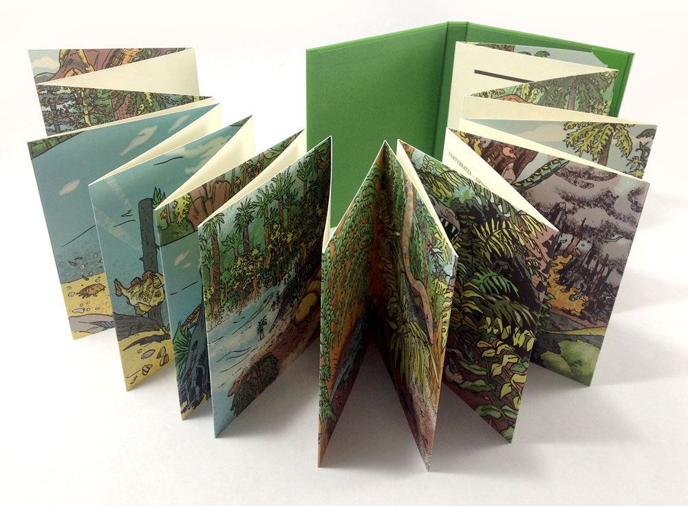 Buy all five books in "The Paleozoic" series and the accordions combine to depict 300 million years of prehistoric life in a 45 feet long illustration.