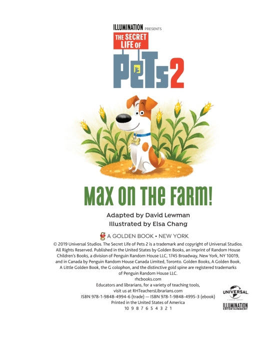 Reunite with Max, Gidget, and all of the pet co-stars in this Little Golden Book illustrated by Elsa Chang! The Secret Life of Pets 2 picks up where the summer 2016 blockbuster--about the lives our pets lead after we leave for work or school each day--left off.