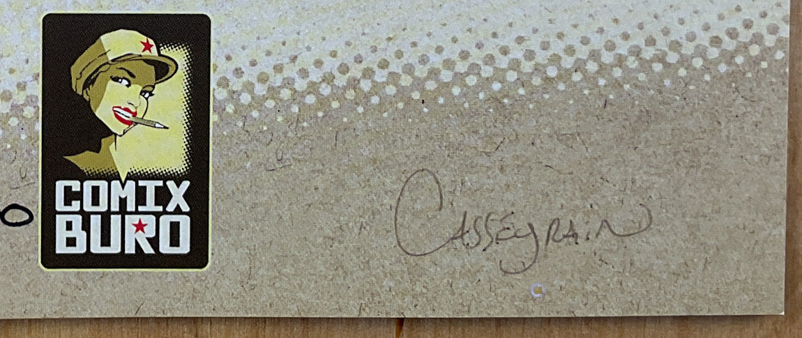 The long out-of-print first collection of sketches, drawings and color renderings by this French animation and bande dessinée artist (Tao Bang, Code McCallum, Piege sur Zarkass). Pages of wonderful animal drawings. Character development drawings for Tao Bang and a preview of Tao Bang 3. Artwork for an animated adventure film. And many lovely femmes: sketches, studies, and finished pin-up illustrations for French men's magazine Max. Minimal text in French.