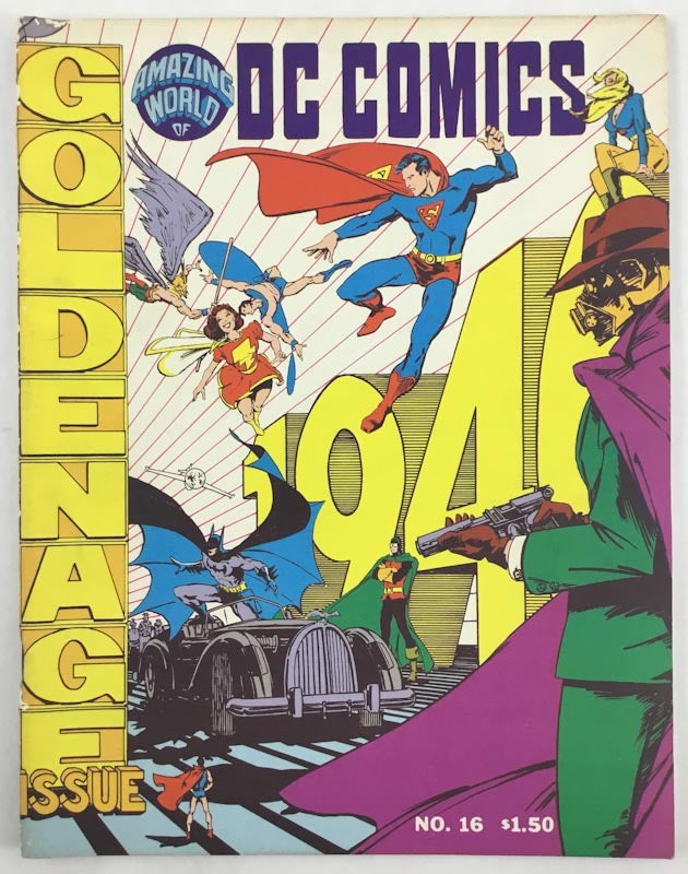 This special Golden Age issue includes the following: "Roots of the Golden Age" by Skip Kirkland; a piece on The Freedom Fighters; an article on how the comic book affected the people and the period during the Golden age; a piece on Plastic Man by Larry Herndon; "The Silver Age of Comics" by Mike Gold; fan Fred Schneider details building models of the Justice Society; a feature on Spectre's confusing continuity; "The Great Superman Movie Contest"; centerspread illustration of Wonder Woman and the JSA by Joe Staton & Bob Layton; and more. Wraparound cover by Marshall Rogers.