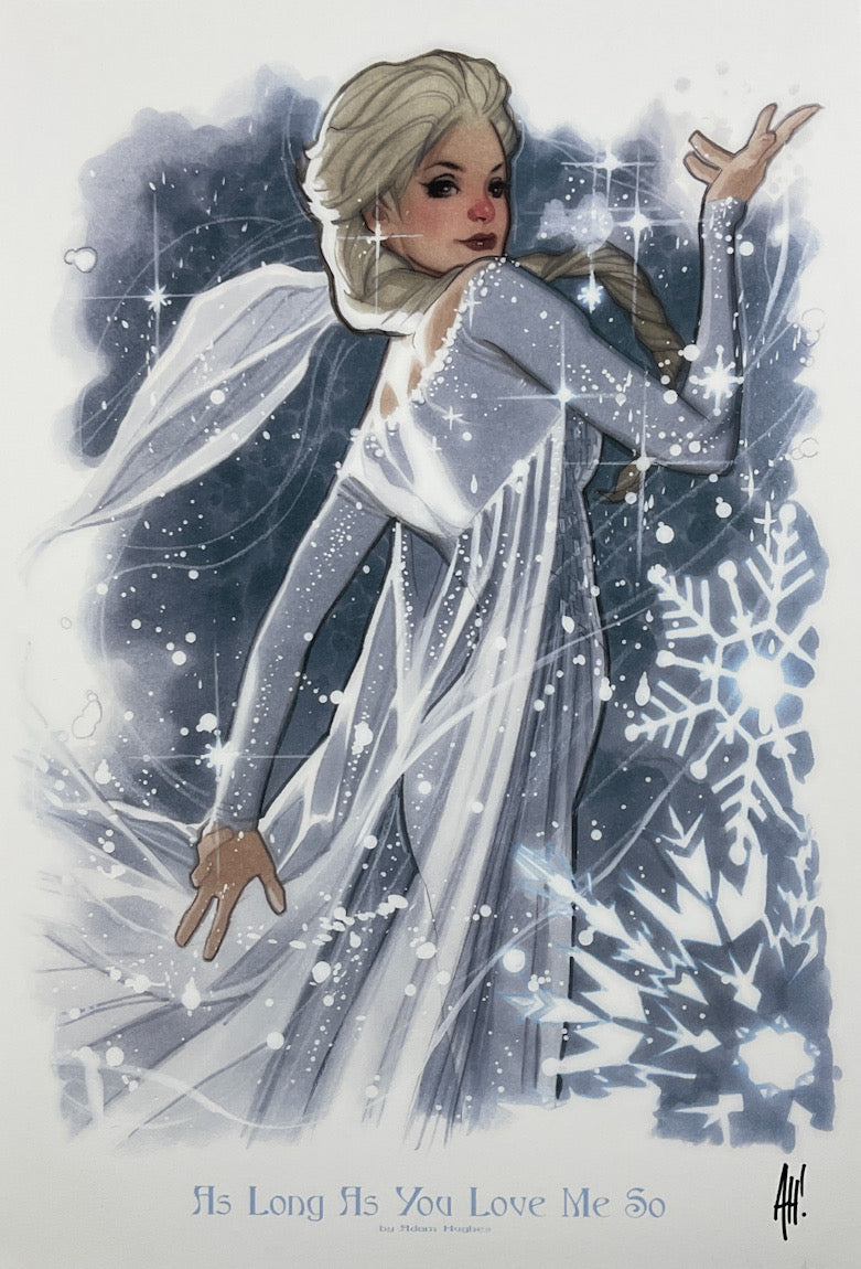 Adam's rendition of Elsa from Frozen. A giclee print on high quality matte paper.