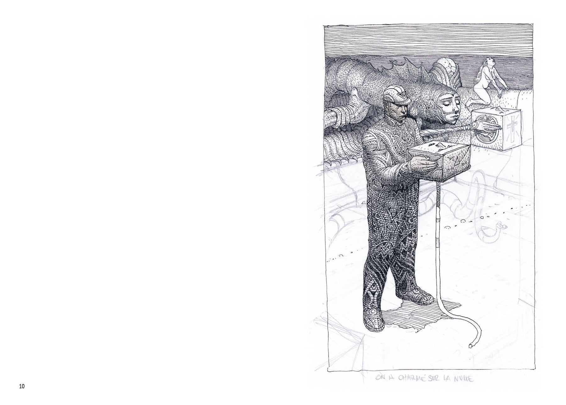 For Moebius, walking around with a sketchbook in his pocket at all times was a habit and working method. These two sketchbooks, created between 1996 and 1999, collect his graphic musings.