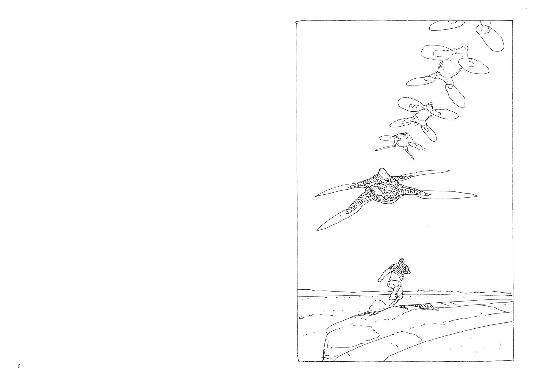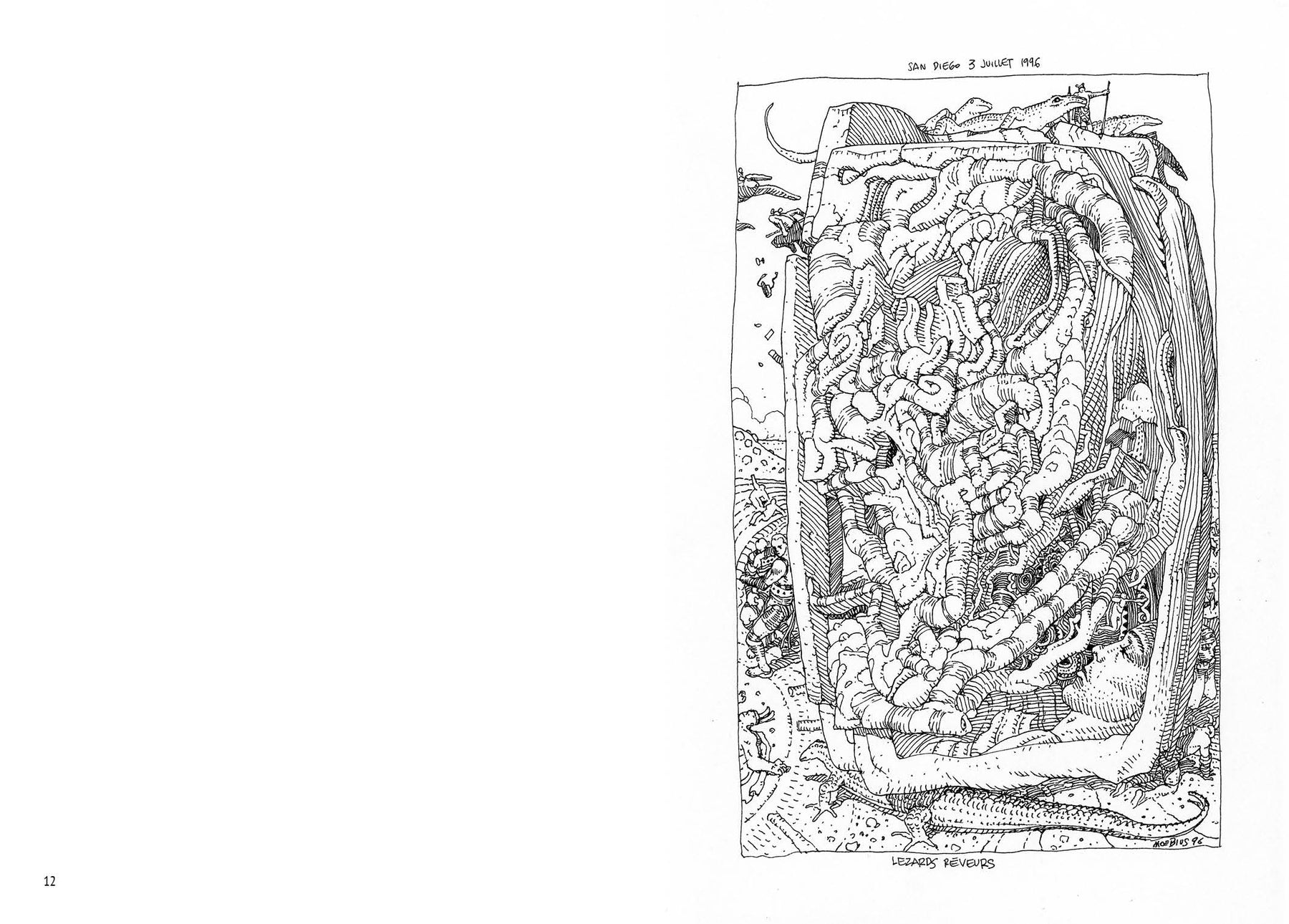 With Lézards Rêveurs, these mental snapshots project us directly into another world, opening up a more intimate glimpse into Moebius's life and his dreamlike wanderings.