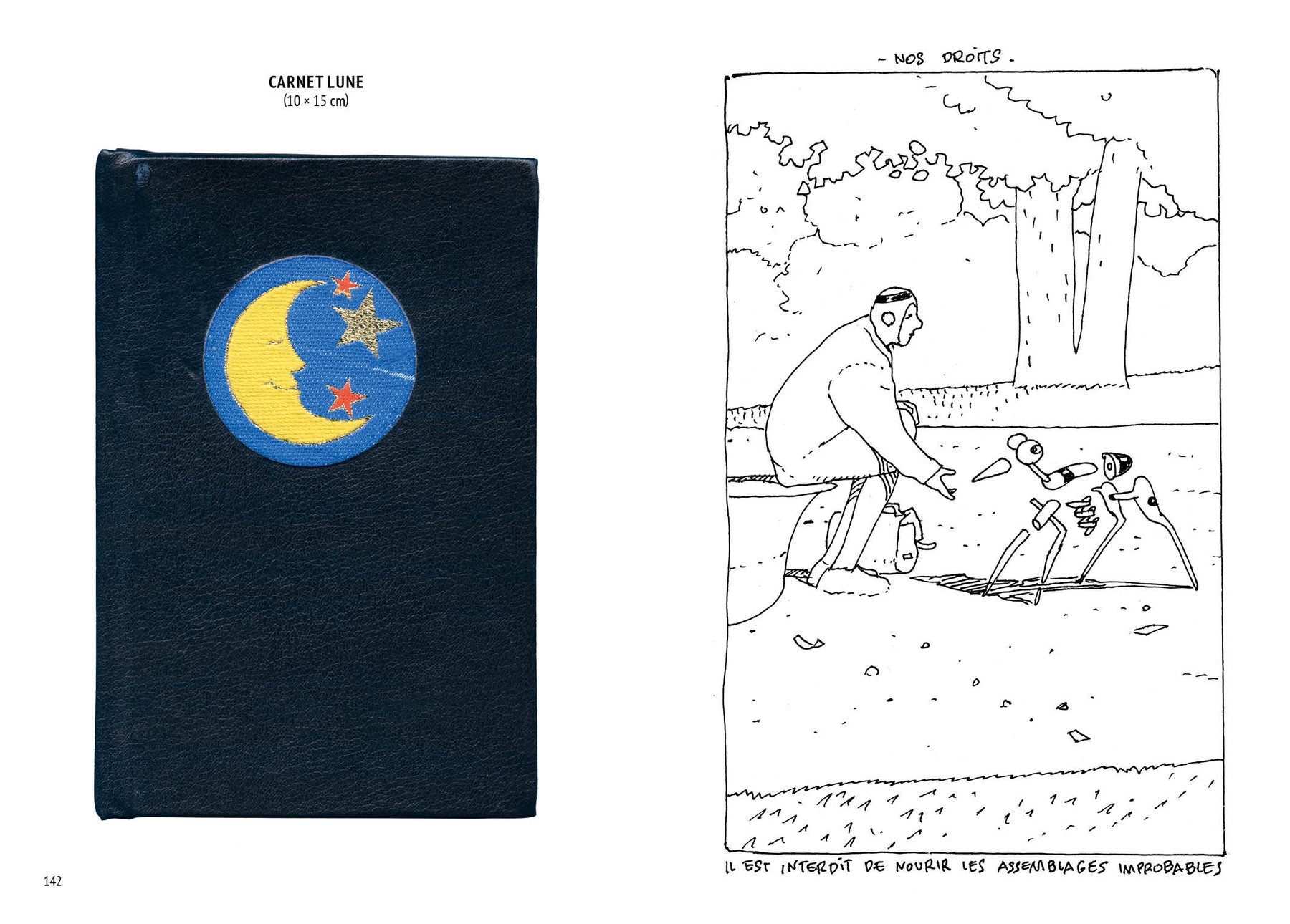 He threw in the seeds of his future albums--such as the first pages of Le Chasseur Déprime--as well as spontaneous concepts, poems, and observational drawings: family moments, friendly encounters, or specific places: Paris, Montrouge, Los Angeles, Boston, Mexico City, or New York...