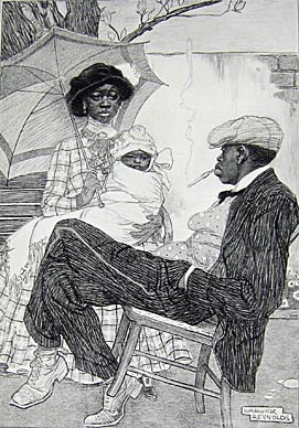 Six plates reproducing six stages in the creation of "Prosperity" a drawing in conte crayon.