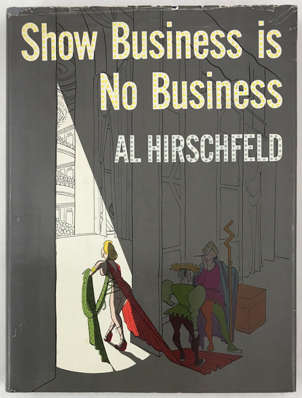 Lively witty essays on the theatre written & illustrated by Hirschfeld. Hirschfeld describes the world he knows so well in eleven chapters: Theatres, Producers, Playwrights, Directors, Agents, Designers, Angel Auditions, Auditions for Actors, Rehearsals, Out-of-Town Opening, New York Opening. This is a showcase of his beautiful illustration work (as opposed to his familiar caricature work).