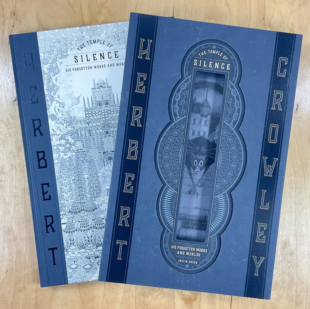 This is the slipcased edition, with an elaborate diecut decorated slipcase, but it lacks the bookplate signed and numbered by author Justin Duerr and publisher Josh O'Neill glued to the front endpaper. It is likely part of the over-run. Collects over 300 jaw-dropping images of otherworldly shrines, whimsical cartoons, grotesque creatures, nightmares, and dreamscapes from the work of Herbert Crowley, an innovator at the dawn of comics.