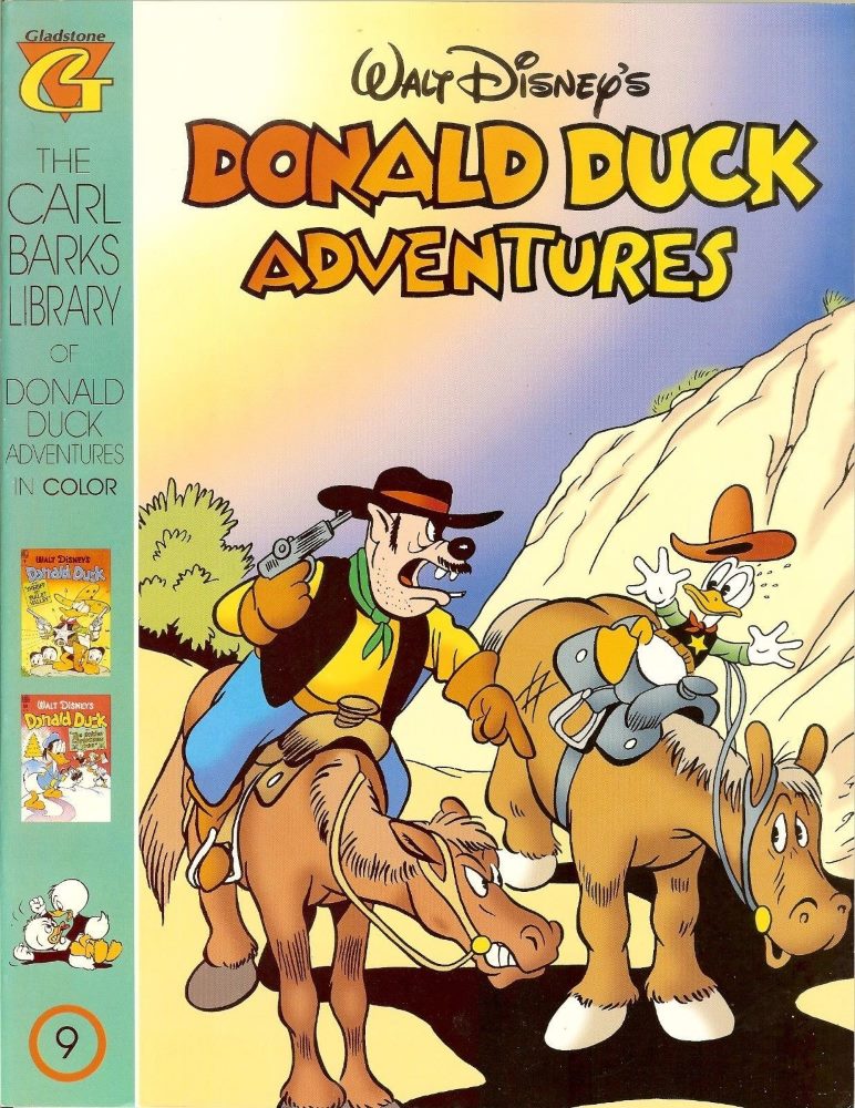 Magazine-size reprints of Carl Barks stories with excellent reproduction and color. "Sheriff of Bullet Valley," script and art by Carl Barks; Donald takes a job as deputy sheriff and with the nephews battles cattle rustlers; reprinted from Four Color (Dell, 1942 series) #199. Gold and Greed at Christmas article by Geoffrey Blum; An analysis of Barks' "Golden Christmas Tree" and other Christmas stories. Horse Laughs and Horse Opera article by Geoffrey Blum; Article on Barks' western stories; Cover to Donald Duck Four Color #199 (Sheriff of Bullet Valley) is depicted in black and white. "The Golden Christmas Tree," script and art by Carl Barks; A witch lures the nephews to her lair with a golden Christmas tree; from Four Color (Dell, 1942 series) #203.