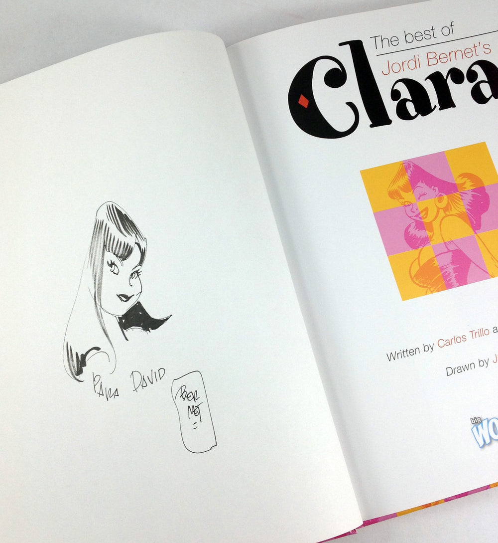 A beautiful hardcover book in English devoted to Bernet's comic strip about a good-hearted prostitute. Strips translated into English, a long interview illustrated with color photos, and pages of Clara sketches, page roughs, and illustrations.