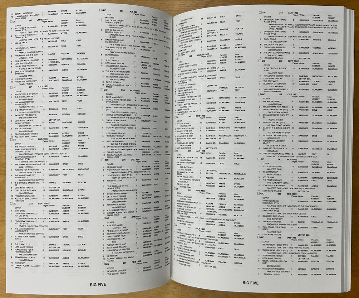 Amazing in its detail, this reference work has a checklist covering ever issue of each of the five titles including writers, artists, inkers and the title of each story in every issue. Included is a checklist of all writers and artists who have contributed to the five titles covered.