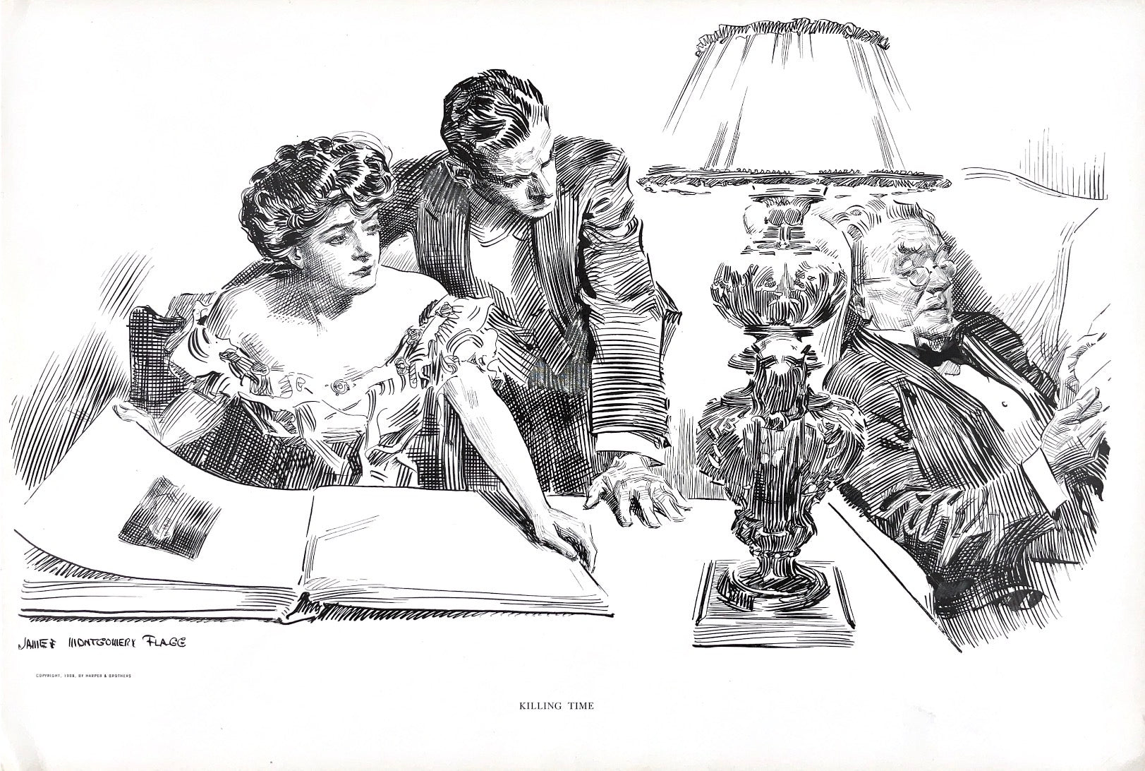 In an oblong format uniform with the Charles Dana Gibson illustration collections published at the same time, this was the only volume devoted to the great Golden Age illustrator James Montgomery Flagg.