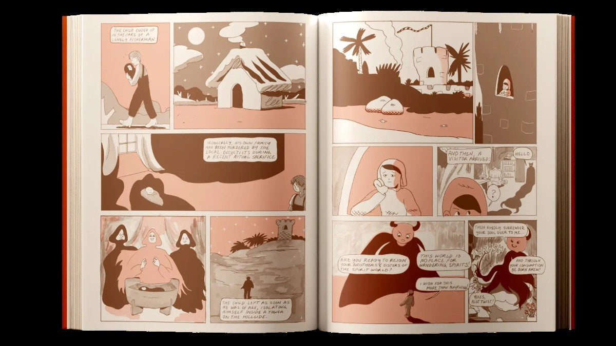 The comics in Crumbling Kingdom pull inspiration from the Souls series, Berserk, Book of the New Sun,The Dark Crystal; printed with blood red and mud brown. Packed with an illustration section, and 8 new comics — including a stunning short from Linnea Sterte, fully in her element.