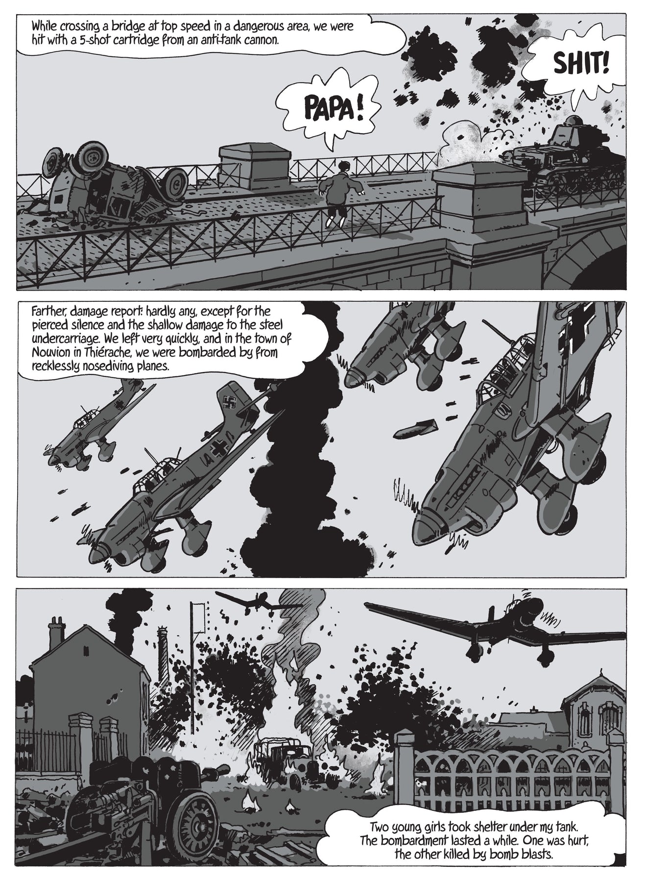 From the publisher:The first volume of a true war trilogy by one of the greatest contemporary cartoonists.Captured by the Germans and sent to a POW camp where he spends the rest of the war, René Tardi lives a harrowing day-to-day existence. He recalls in vivid detail roll calls in sub-zero temperatures, senseless executions--and especially the gnawing hunger. And yet, in the face of daily brutality, he perseveres, thinking of his wife Henriette, awaiting his return home to France. Both an homage to his father and a testament to the silent suffering of a generation of men scarred by war, Jacques Tardi's Stalag IIB is a personal and artistic triumph.