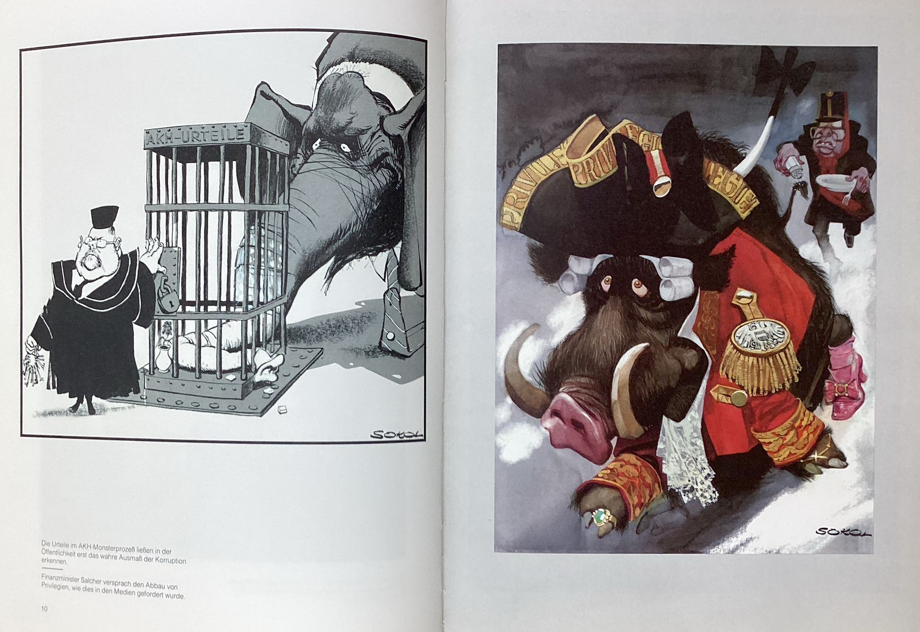 Cartoons and illustrations for the newspaper Neue Kronen 1982-86