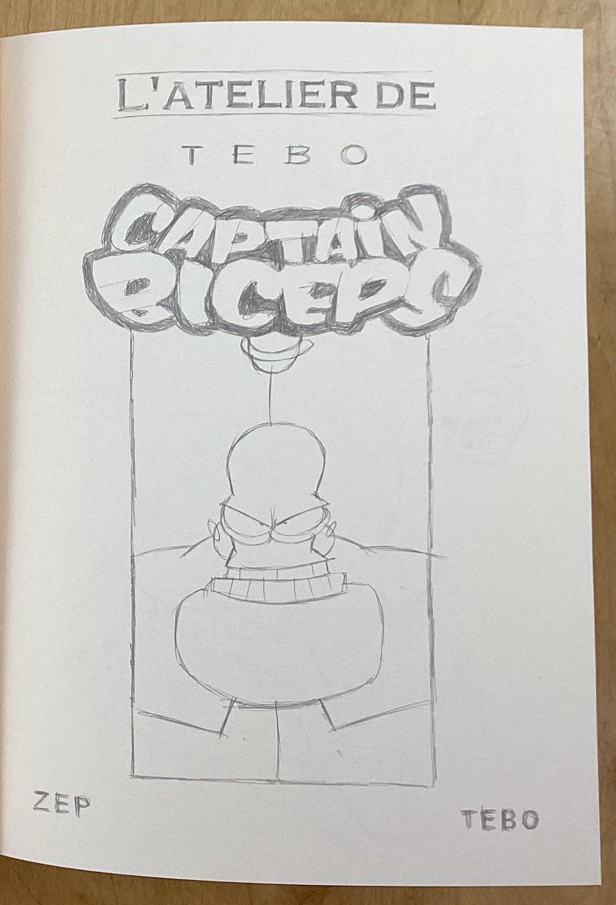 Tébo himself presents his work on the three volumes of Captain Biceps. As with the other books in the collection, the pages are presented in their penciled versions. Tébo has depicted himself as a small character who comments on his work. About twenty drawings were created especially for this album.