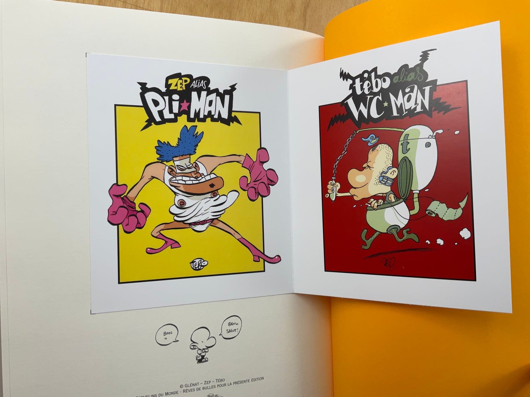 On voit aussi apparaître Zep (en extase devant le travail de son dessinateur) qui a participé en réalisant une partie de l'ex-libris couleur.