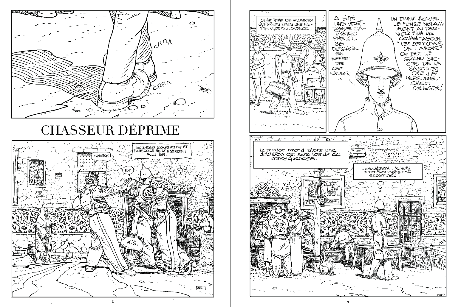 "Une Aventure du Major Grubert par Moebius." This 2009 graphic novel features the return of Major Grubert of the Airtight Garage! The book is full of his trademark tightly rendered pen & inks of fantastical images and vistas. Beautifully printed with rich blacks on thick watercolor paper. Foreword by Jean-Pierre Dionnet.