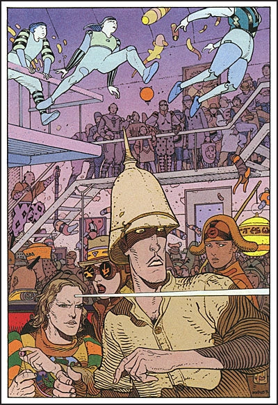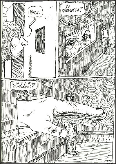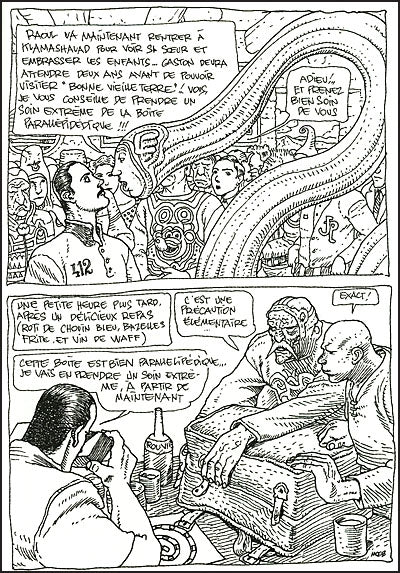 One more trip in the Hermetic Garage, in these pages are several guest-stars: artists Lorenzo Mattotti, Francois Avril, André Juillard, William Vance, Sylvio Cadelo, as well as Moebius' wife and children, Isabelle, Raphael and Nausicaä Giraud.