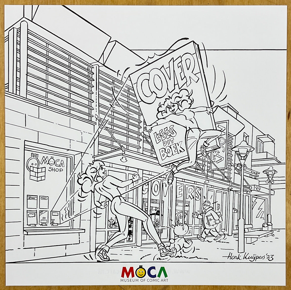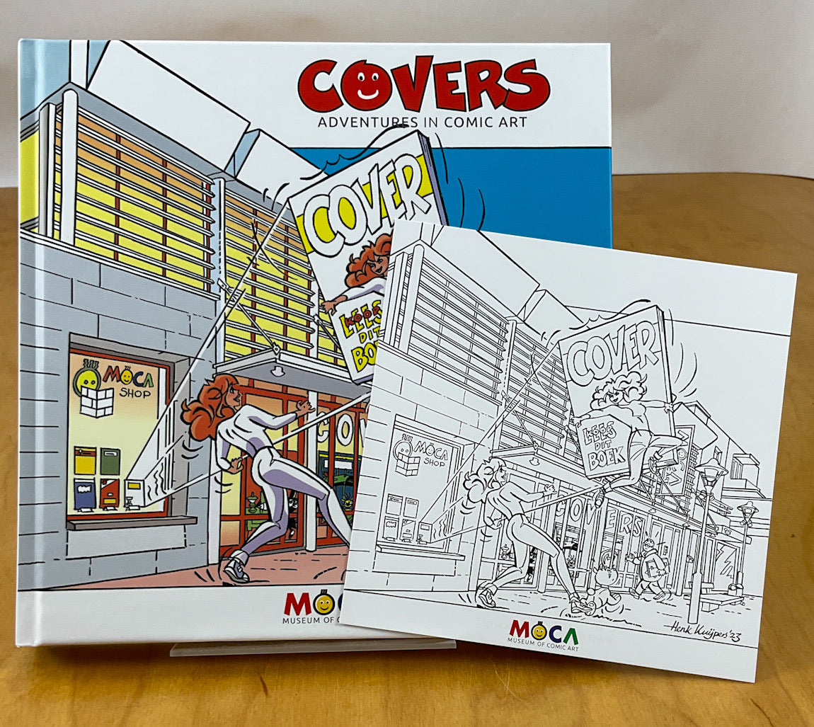 A richly illustrated catalogue has been compiled for the sixth exhibition at MoCA, ' Covers, Adventures in Comic Art' . This unique catalog is being published once in a limited edition of 700 copies. Bilingual in Dutch/English. The deluxe hardcover edition, sewn bound – size 210 x 210 mm – contains 176 color pages with illustrations of 66 originals on display and extensive information about the covers by well-known national and international comic artists. The famous cartoonist Henk Kuijpers drew a beautiful illustration of the cartoon character Franka for the cover especially for the MoCA. Renowned Dutch astronaut André Kuipers is a great comics fan. He wrote a captivating foreword to this catalog, in which he writes: "For me, comics are history, humor, and art, and they fuel the imagination to experience the same adventures as the characters. Ultimately, this led to my actual adventures as an astronaut." Ger Apeldoorn, Arie Korbee , and John Asselbergs curated this beautiful exhibition and catalog. The book includes a small ArtPrint of an illustration created specifically for the cover by Henk Kuijpers.