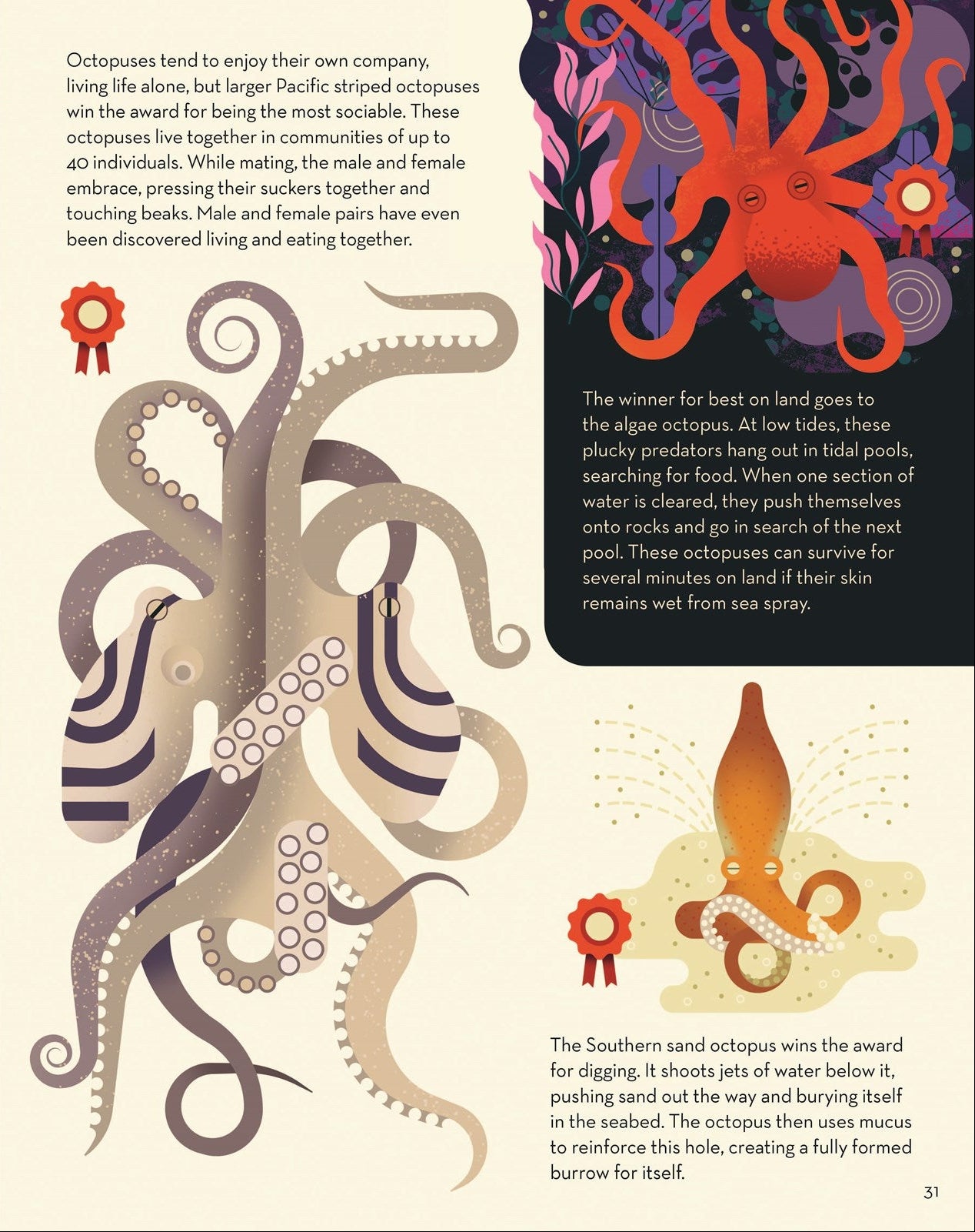 Dive into this fascinating illustrated guide all about the aliens of the deep. From the truly terrifying giant Pacific octopus to the inventive common octopus, find out where they live, what they eat and how we can protect them. The latest paperback in acclaimed illustrator Owen Davey's popular "About Animals" series, featuring his signature minimalist art style with colorful, design-oriented layouts--Obsessive About Octopuses is sure to delight kids as well as adult cephalopod fans.