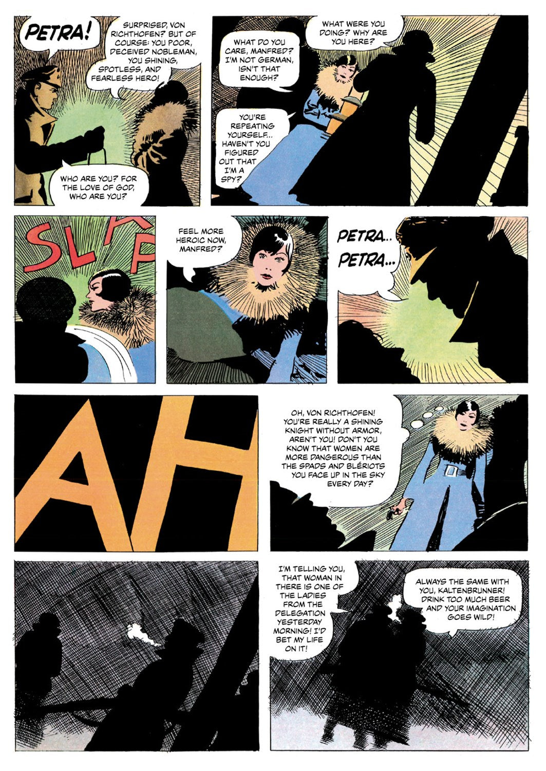Set during World War I and originally published in serial format from 1977–1982, Petra Chérie follows the adventures of Petra De Karlowitz, "Chérie" to creator Attilio Micheluzzi, who addresses her throughout the book. Born to a Polish businessman and the most beautiful woman in Paris, raised in Canton, China, and now based in neutral Holland, she is a spy who answers only to herself. Evoking but cleverly eschewing stereotypes of the femme fatale, Petra is equally at home in the cockpit of an airplane and behind the wheel of a motorcar. More than that, she is an endlessly fascinating enigma and one of the most iconic characters in Italian comics.