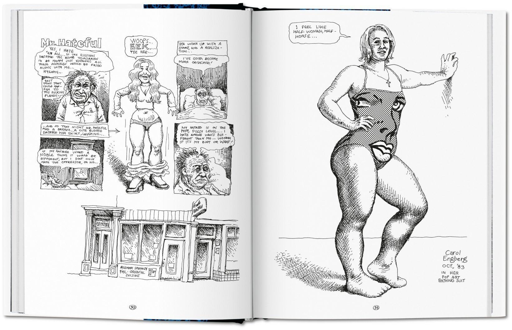 Expect this book to be no different. Combining volumes 7 and 8 from the first boxed set (confusing, we know), it spans the years 1982 to 1989, a period when the artist was comfortably ensconced in rural California, raising his young daughter Sophie, who appears throughout this volume. But Crumb was still Crumb, declaring in one drawing, above a lovingly rendered tree, "As I get older I get more twisted, convoluted, depraved, cynical, embittered, self-centered, jaded, debauched, ruthless, greedy, conceited, set-in-my-ways, long-winded, absent-minded, prejudiced, closed-minded, misanthropic, nervous…"