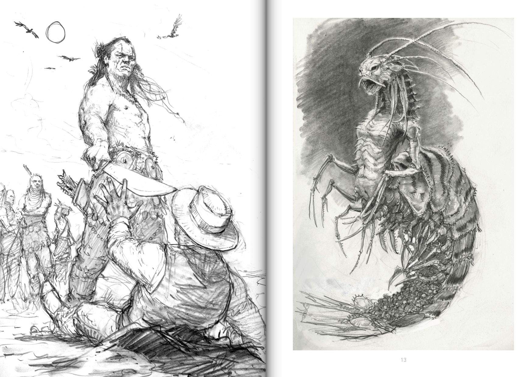 Welcome to the world of Thomas Elliott. Between monstrous, insect-like imaginary creatures and fighters of all kinds, from cowboys to valiant knights, this sketch collection includes a wide assortment of subject matter and media.