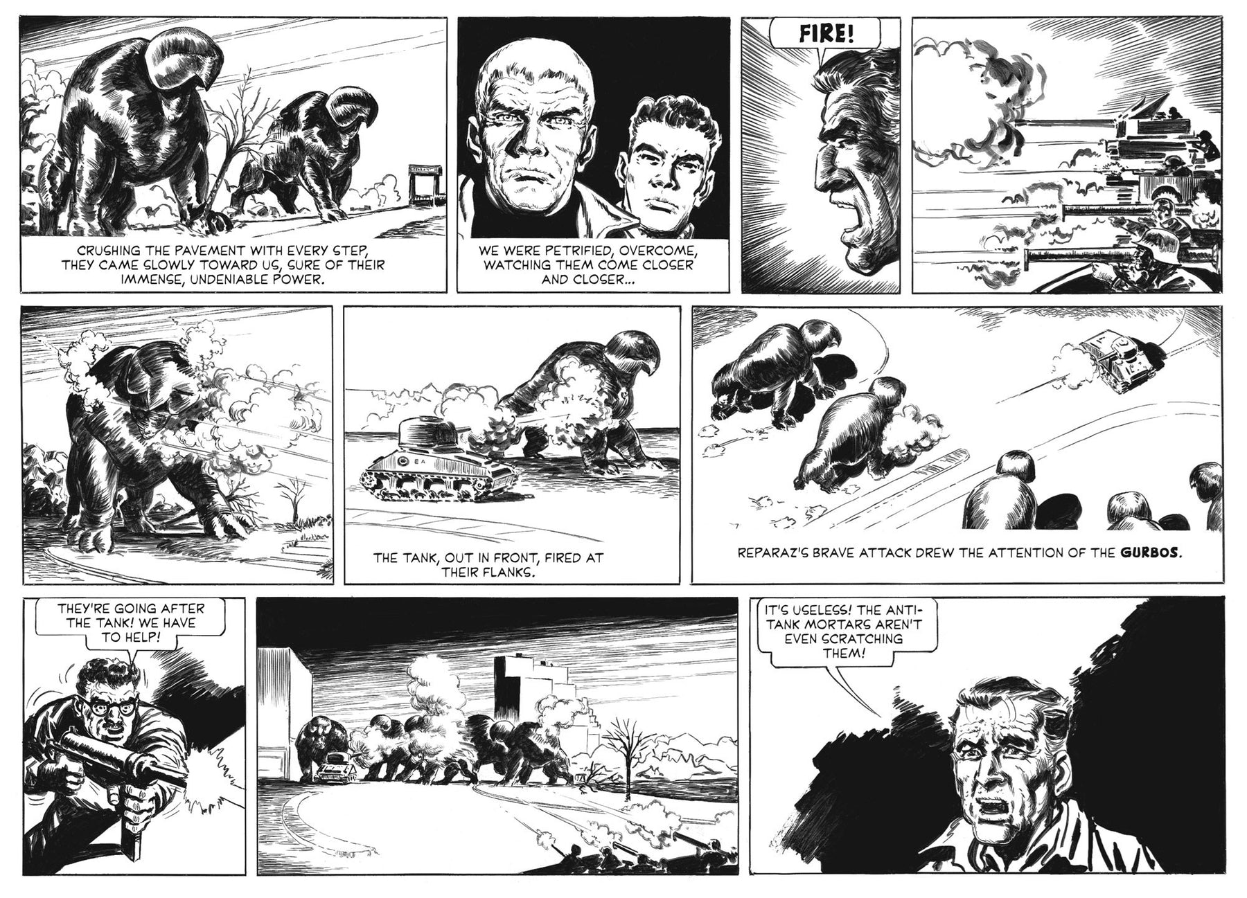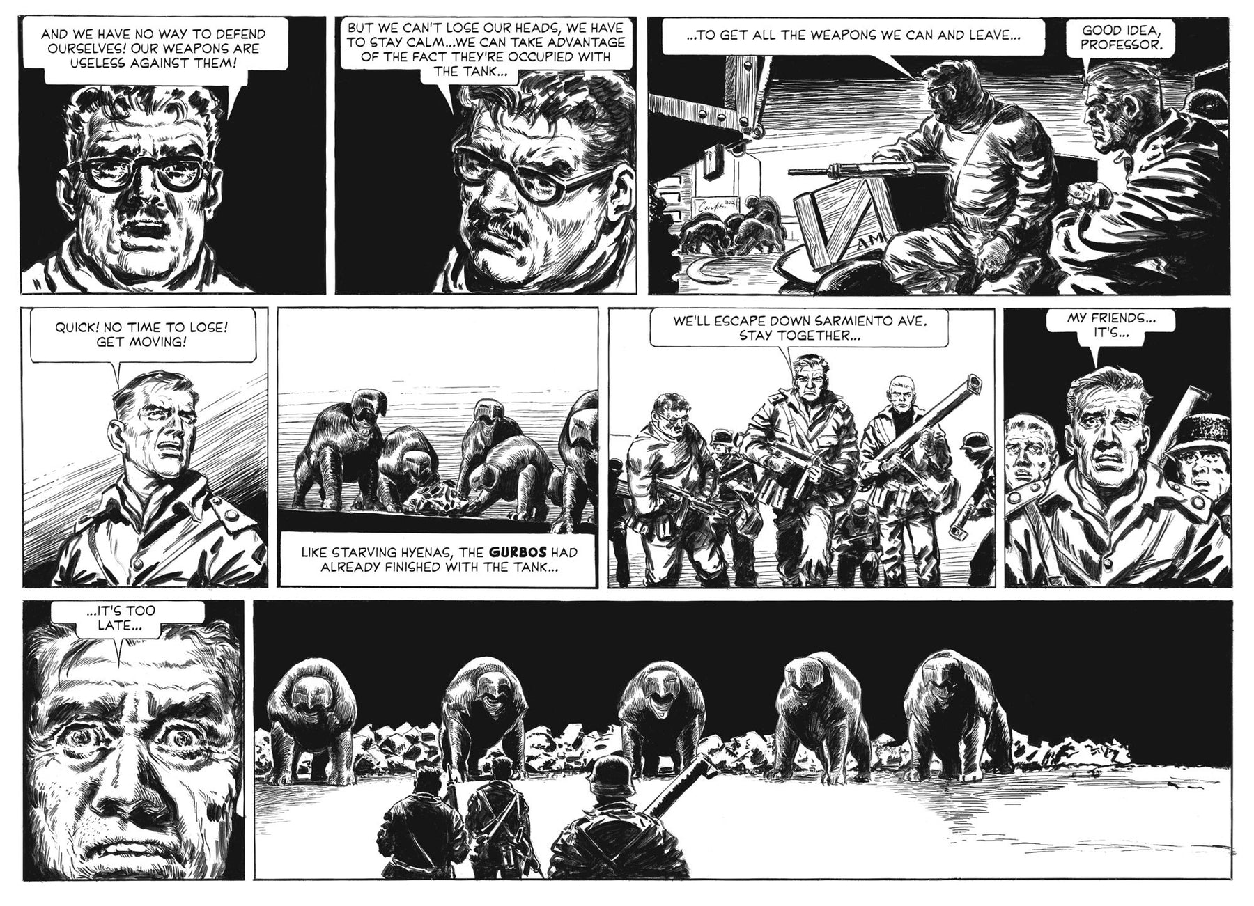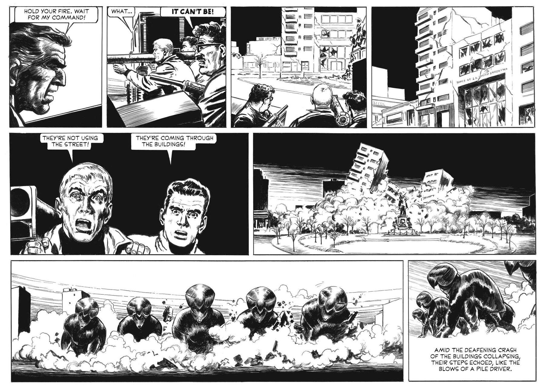A gathering of neighbors in suburban Buenos Aires is interrupted by an eerie, phosphorescent snowfall. When those outside exposed to the "snow" start dropping dead, it becomes clear that the harmless-looking "snow" reflects the vanguard of an alien invasion, and a story of survival, cunning, and armed struggle against them unfurls. Written by the Argentine author Héctor Germán Oesterheld — who opposed the military junta in the late '70s, and was disappeared, along with his daughters, in 1977 — and drawn by Francisco Solano López in an appropriately pulpy, representational style. The story, originally serialized from 1957 to 1959, holds a mirror to Argentine politics, reflecting an era of paranoia, military juntas, and Cold War geopolitics. Encounter the gripping tale that remains a symbol of resistance in Latin America to this day.