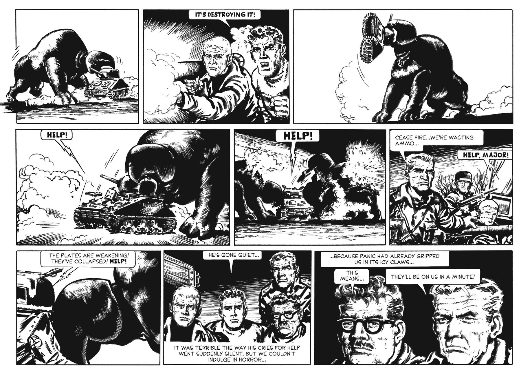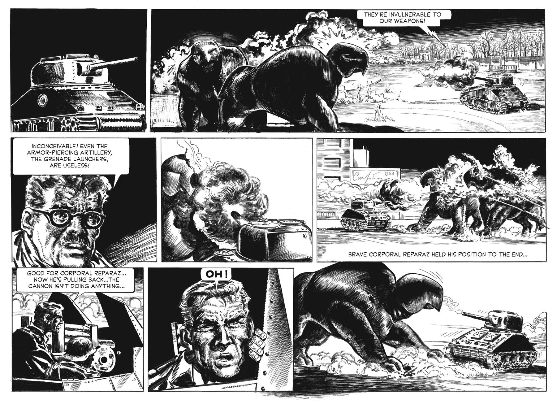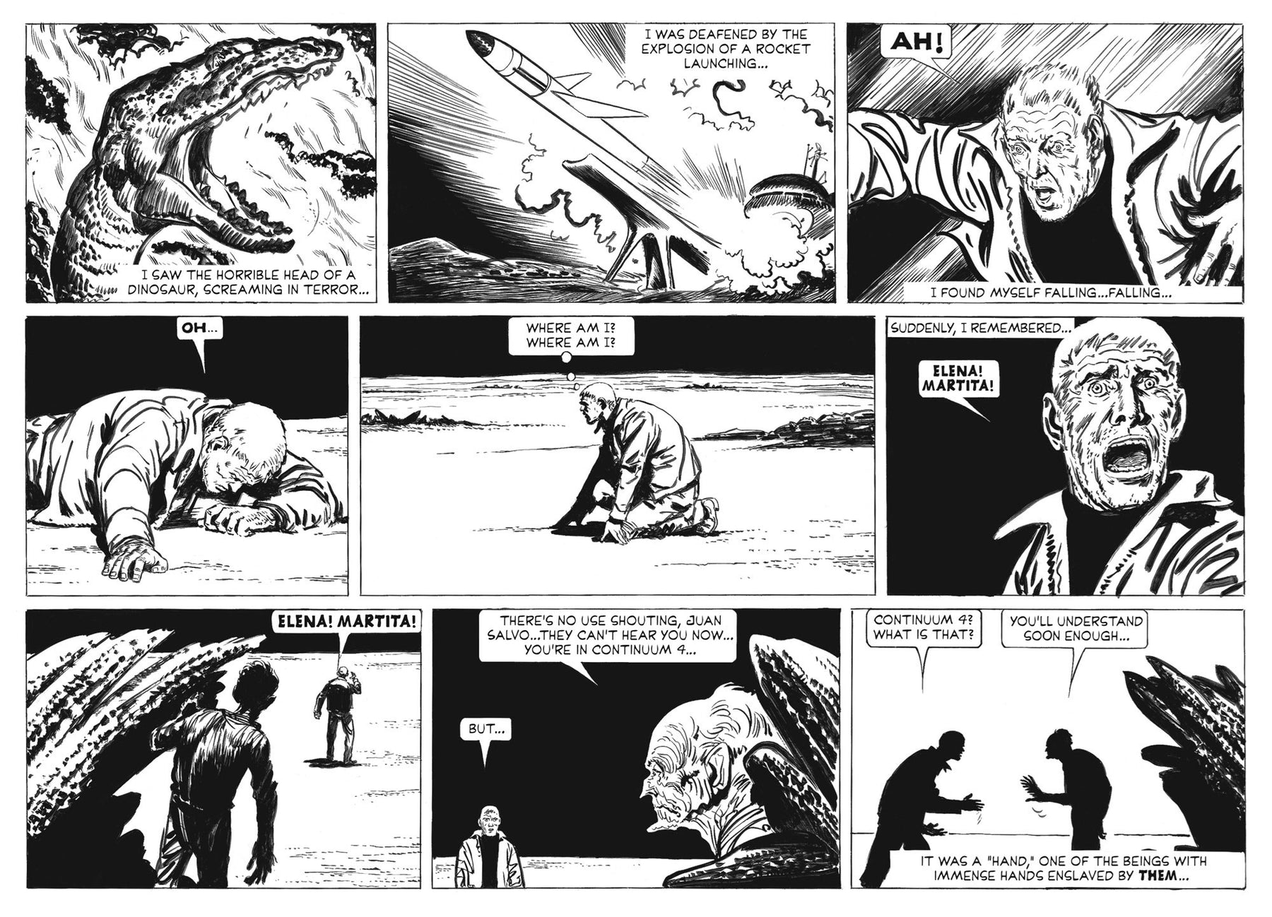 A gathering of neighbors in suburban Buenos Aires is interrupted by an eerie, phosphorescent snowfall. When those outside exposed to the "snow" start dropping dead, it becomes clear that the harmless-looking "snow" reflects the vanguard of an alien invasion, and a story of survival, cunning, and armed struggle against them unfurls. Written by the Argentine author Héctor Germán Oesterheld — who opposed the military junta in the late '70s, and was disappeared, along with his daughters, in 1977 — and drawn by Francisco Solano López in an appropriately pulpy, representational style. The story, originally serialized from 1957 to 1959, holds a mirror to Argentine politics, reflecting an era of paranoia, military juntas, and Cold War geopolitics. Encounter the gripping tale that remains a symbol of resistance in Latin America to this day.