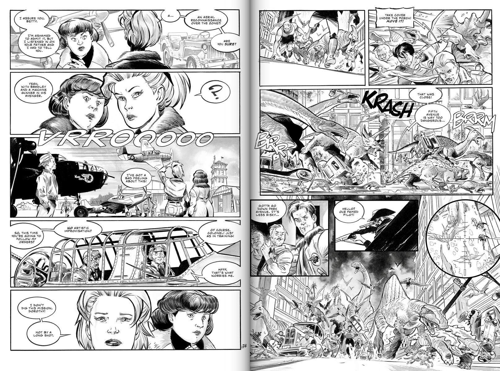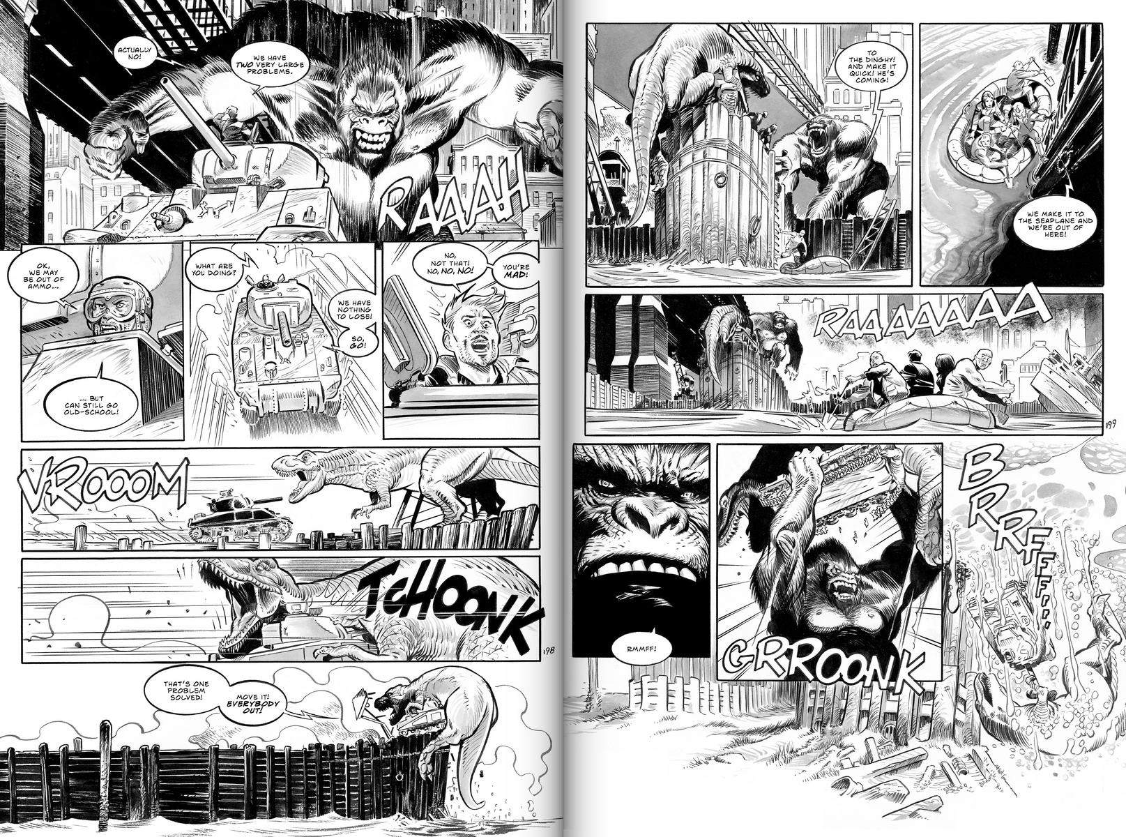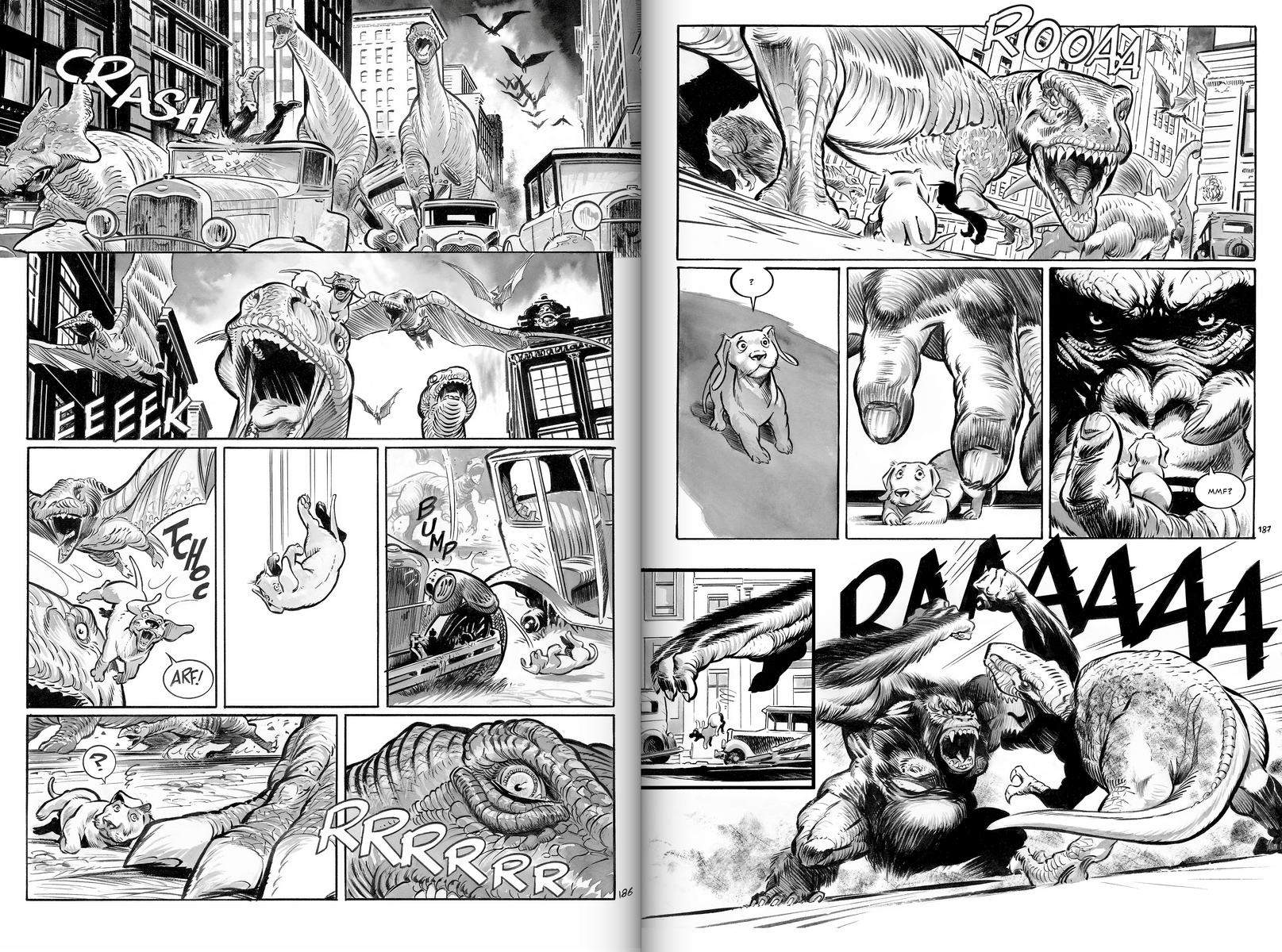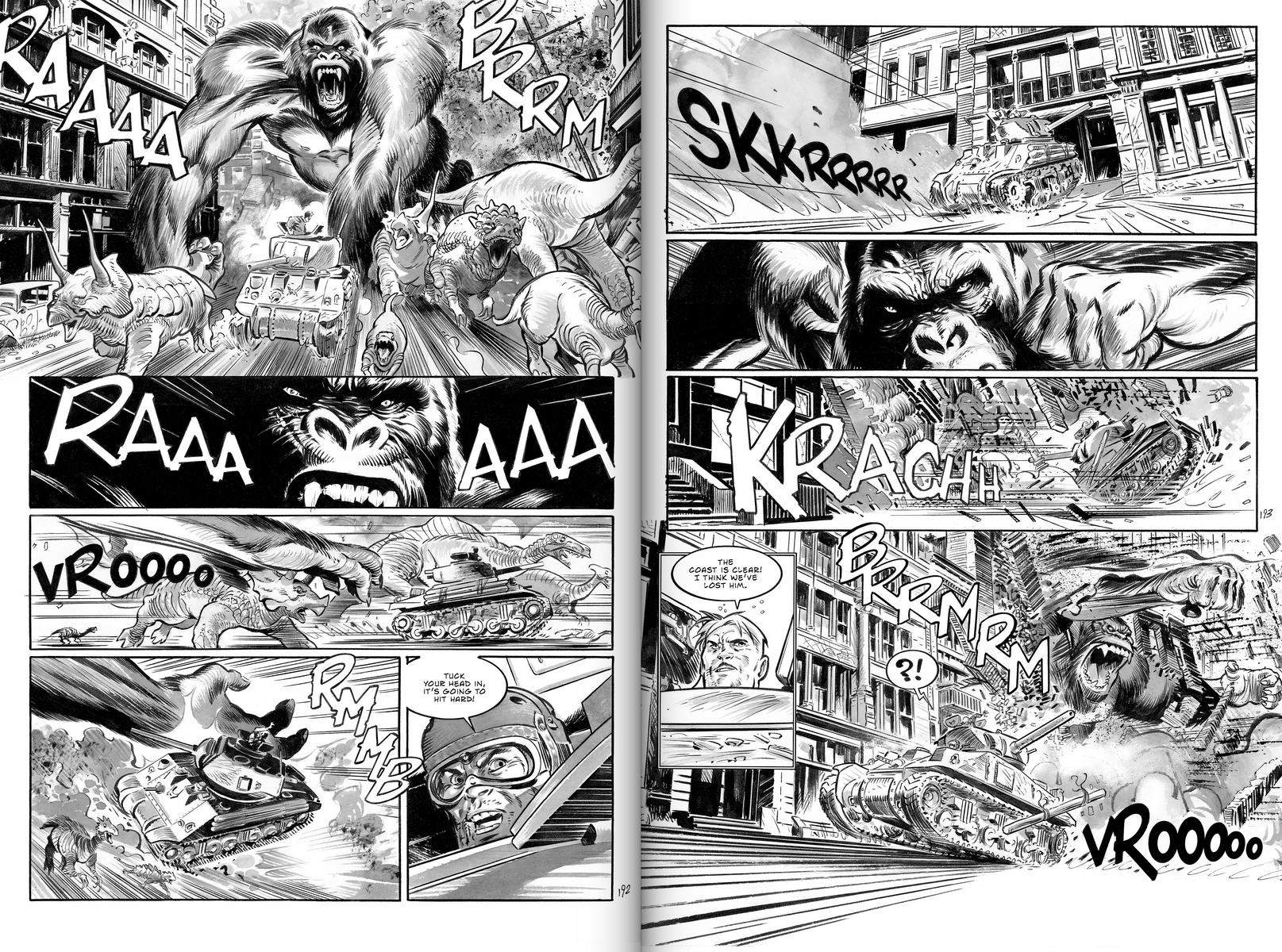 Virgil tries to escape Manhattan, accompanied by reporter Irvin Stone and his friends in misfortune, but a wall of flames ravages Central Dark. As Queen Damara pursues the fugitives, they cross paths with Kong and a horde of dinosaurs driven mad by the fire! Faced with the chaos, Betty sees her father, Colonel Pearl, take to the skies in his Avenger, determined to put an end to his demons. As for Spit, he's still trying to get home, but trapped between the flames and the Hudson River, will he be able to escape?