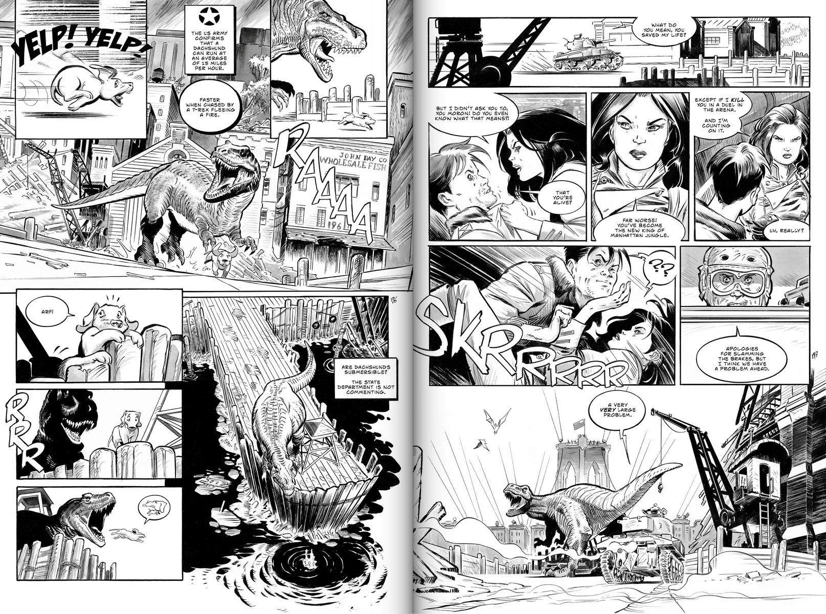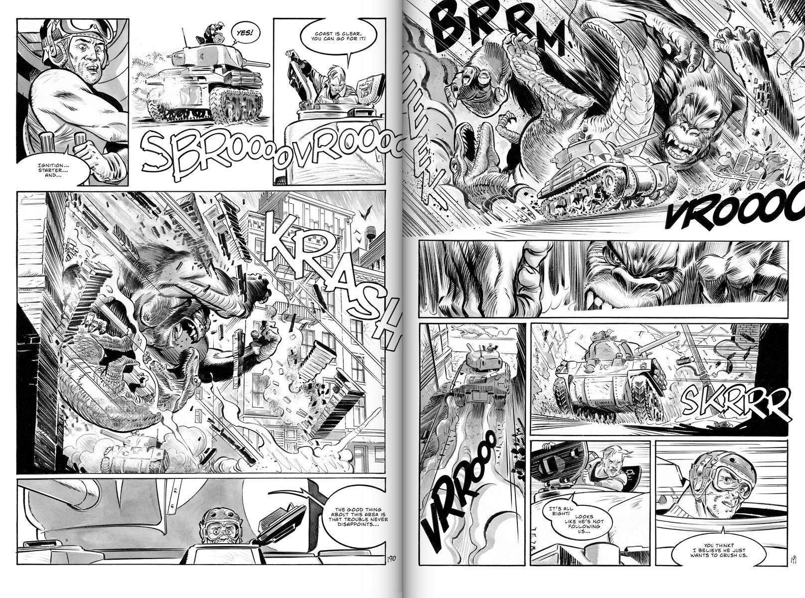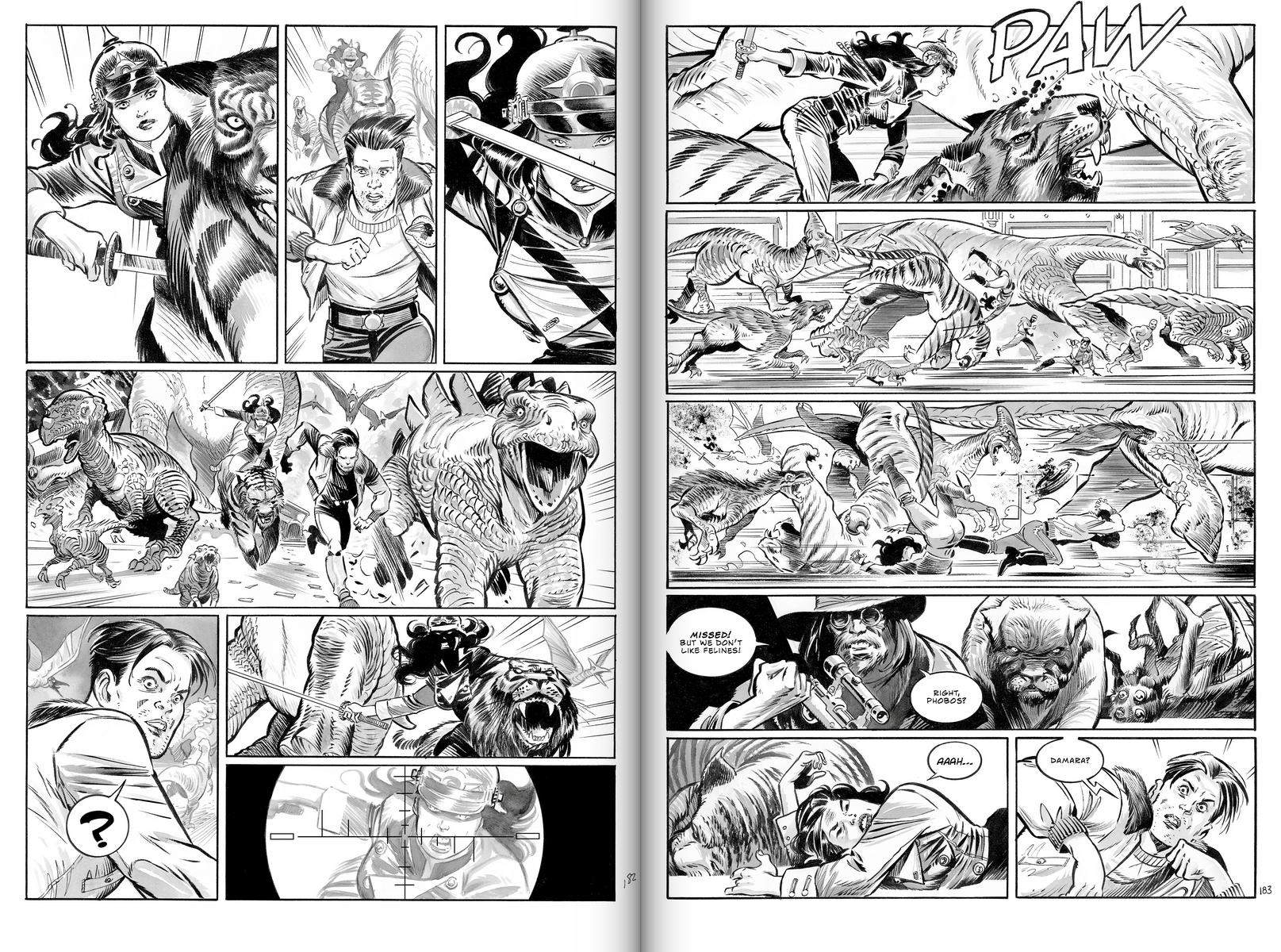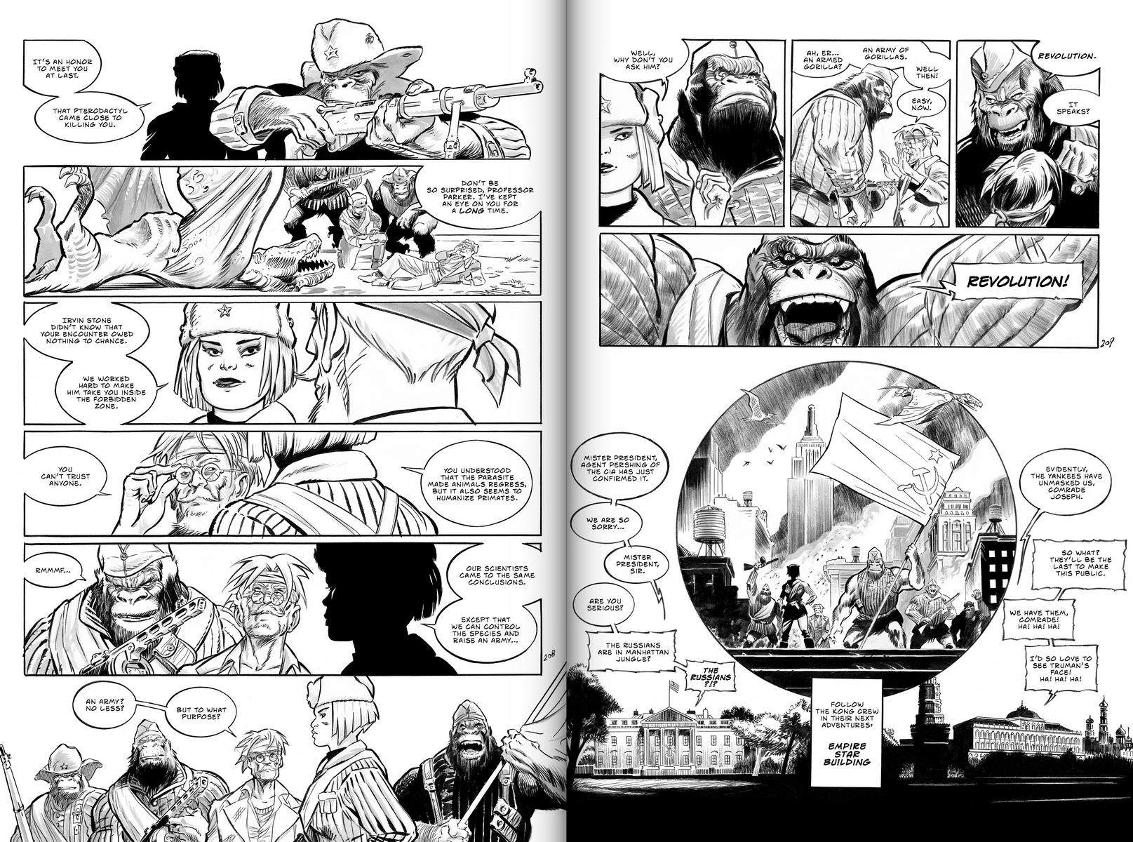 Virgil tries to escape Manhattan, accompanied by reporter Irvin Stone and his friends in misfortune, but a wall of flames ravages Central Dark. As Queen Damara pursues the fugitives, they cross paths with Kong and a horde of dinosaurs driven mad by the fire! Faced with the chaos, Betty sees her father, Colonel Pearl, take to the skies in his Avenger, determined to put an end to his demons. As for Spit, he's still trying to get home, but trapped between the flames and the Hudson River, will he be able to escape?