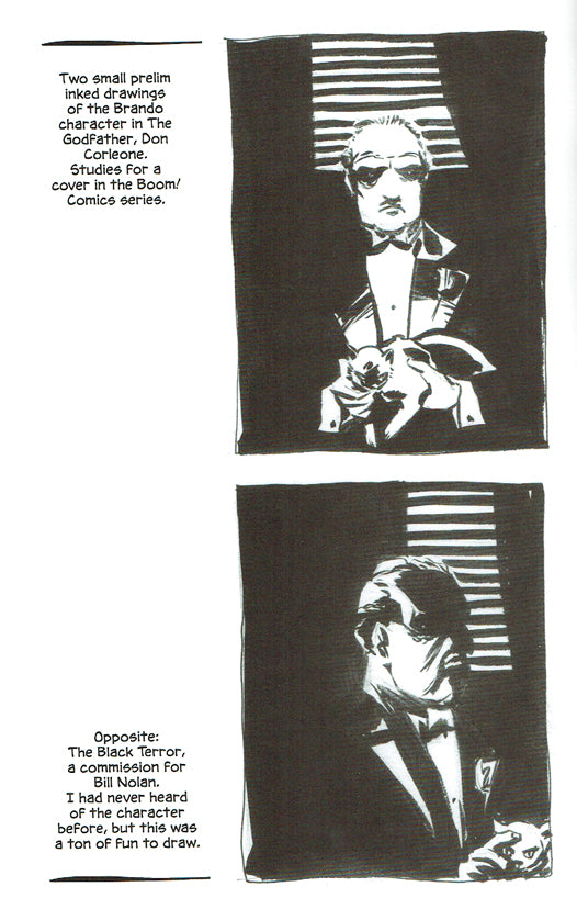 This Tim Sale sketchbook contains pen-and-ink, wash and pencil drawings and sketches. Marvel and DC characters, cover designs, etc. along with the artist's commentary.